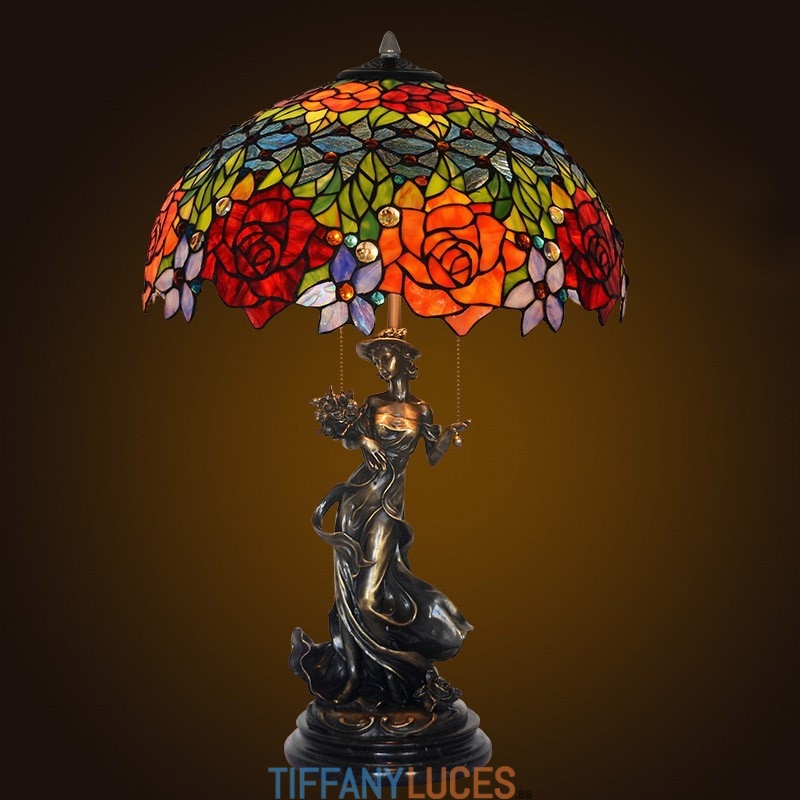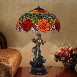 Lámpara de mesa de vidriera rosa Tiffany de 123 cm