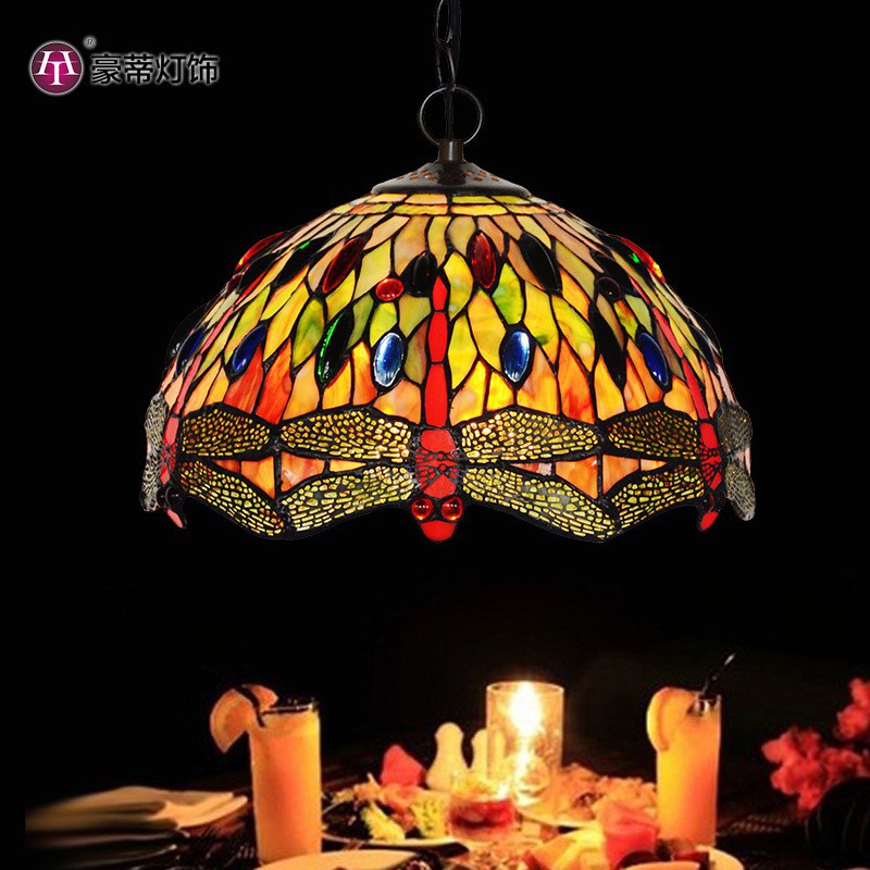 Lámpara colgante Tiffany de vidrieras de libélula de 30 cm